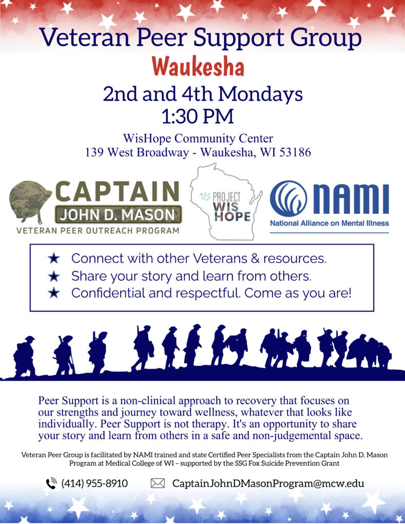NAMI Milwaukee County Support Group: Still offered by Veteran Peer Mark Flower.